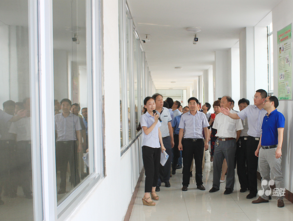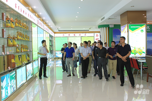 On the afternoon of August 7, 2017, 32 leaders and experts from the National Agricultural Technology Center High Oleic Acid Peanut Investigation Team conducted an on-site inspection of Jinsheng Peanut Demonstration Base, Jinsheng Biotechnology Company and Jinsheng Grain and Oil Company. The County Agricultural Bureau Director Yin Jixi and Director of the Peanut Office Yang Dianqing accompanied the inspection. Cui Yanfeng and Wu Yubo, deputy general managers of Jinsheng Group, and Liu Xueying, deputy general manager of Jinsheng Cereals and Oils Company, attended the reception.