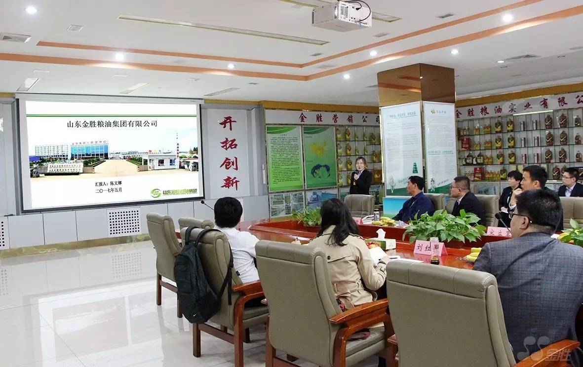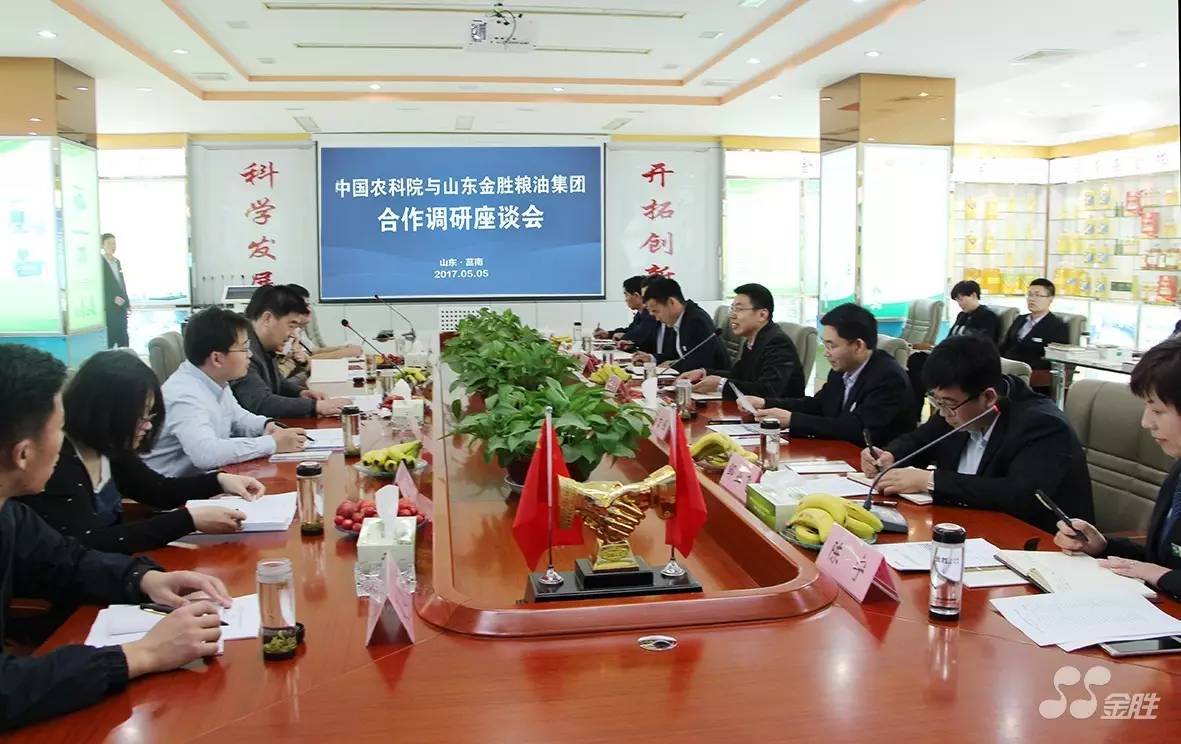 On the morning of May 5, 2017, a research symposium on cooperation between the Institute of Agricultural Products Processing of the Chinese Academy of Agricultural Sciences and Shandong Jinsheng Cereals and Oils Group was grandly held at Jinsheng Group. Wang Qiang, deputy director and researcher of the Institute of Agricultural Products Processing of the Chinese Academy of Agricultural Sciences, led key members of the expert team to Jinsheng Group to inspect and discuss cooperation. Jinsheng Group General Manager Gao Guanyong, Deputy General Manager Song Lili, Deputy General Manager Cui Yanfeng, Deputy General Manager Wu Yubo and other senior corporate executives and key members received and participated in this symposium.