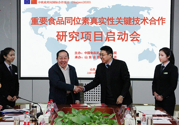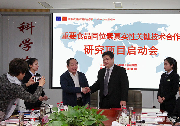 On March 2, 2017, the launch meeting of the National Key R&D Plan-Intergovernmental International Scientific and Technological Innovation Cooperation Key Project "Cooperative Research on Key Technologies for Authenticity of Important Food Isotopes" was held grandly at Shandong Jinsheng Cereals and Oils Group. The project is jointly undertaken by well-known domestic scientific research institutes such as China Food Fermentation Industry Research Institute and Jinsheng Group, as well as well-known enterprises in the grain and oil industry. It has brought together a large number of well-known experts and scholars in the industry and gathered the country's first-class scientific research and technical strength.