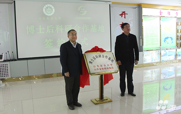 In a warm and friendly atmosphere, Wu Maodong, deputy director of the Human Resources Department of Shandong Agricultural University, and Gao Guanyong, chairman and general manager of Jinsheng Group, jointly signed the "Cooperation Agreement between Shandong Agricultural University and Shandong Jinsheng Cereals and Oils Group Postdoctoral Research Workstation." Finally, Wang Zhenlin, Vice President and Professor of Shandong Agricultural University, and Zhang Lei, Deputy Secretary of the County Party Committee, unveiled the joint postdoctoral research cooperation base.