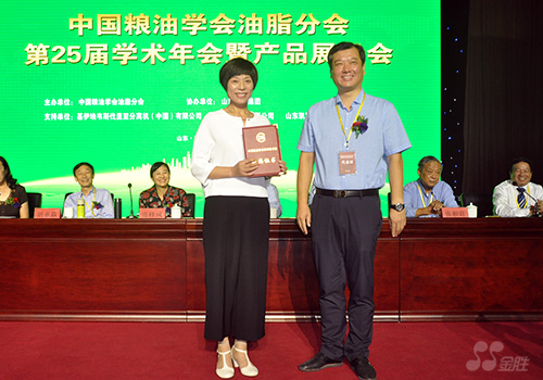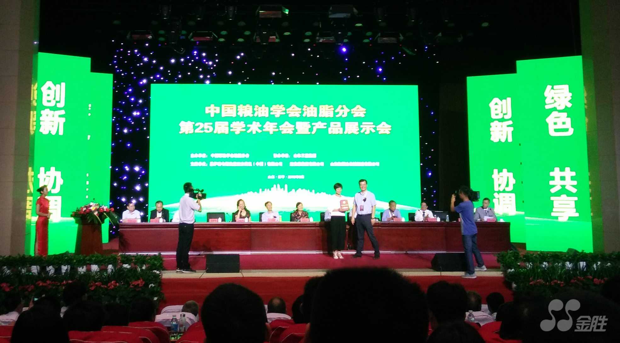 From September 26th to September 27th, 2016, the "25th Annual Academic Conference and Product Exhibition of the Oils and Fats Branch of the China Cereals and Oils Society" hosted by the Oils and Fats Branch of the China Cereals and Oils Society was successfully held in Zouping, Shandong. The conference held the China Cereals and Oils Society Science and Technology Award Ceremony. The scientific research application project of Jinsheng Group: "Research and Application of Production Technology of Adaptable Temperature Pressed Flavored Peanut Oil" won the third prize of science and technology at the conference. Chen Ning, director of the R&D Center, took the stage to receive the award on behalf of Jinsheng Group. prize.