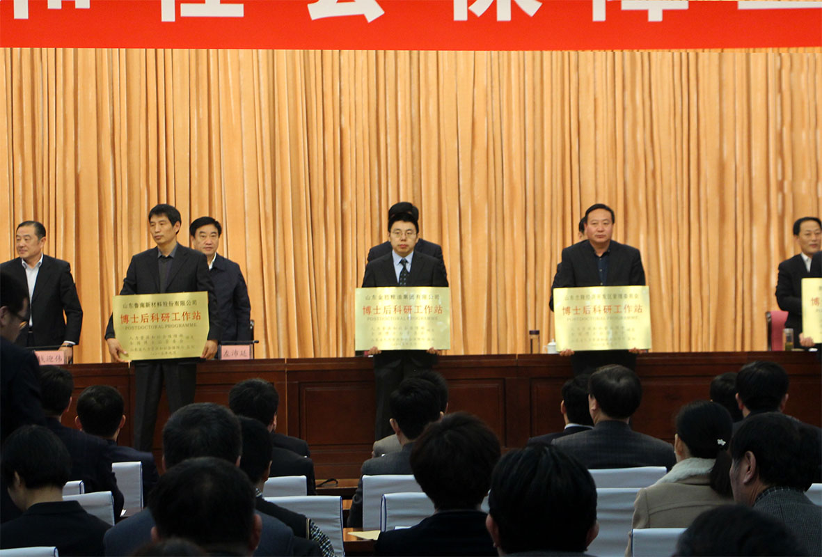 Recently, Shandong Jinsheng Grain and Oil Group has welcomed a happy event: approved by the Ministry of Human Resources and Social Security and the National Postdoctoral Management Committee, Shandong Jinsheng Grain and Oil Group Co., Ltd. is honored to become one of the approved national postdoctoral research workstation units. On March 2, 2016, the Linyi Municipal Human Resources and Social Security Bureau held a national-level postdoctoral research workstation centralized awarding ceremony for the 7 units in Linyi City that were approved as national-level postdoctoral workstations in 2015. The meeting was chaired by Xing Jun, Director of the Human Resources and Social Security Bureau. Sheng Group was represented by Chairman and General Manager Gao Guanyong at the meeting.