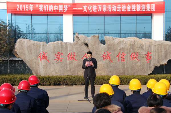 On December 24, 2014, your dreams and my dreams were strung together into a Chinese dream. With the Jinsheng family full of expectations, the 2015 "Our Chinese Dream"-Culture Entering Thousands of Homes event came to Jinsheng Cereals and Oils Group.