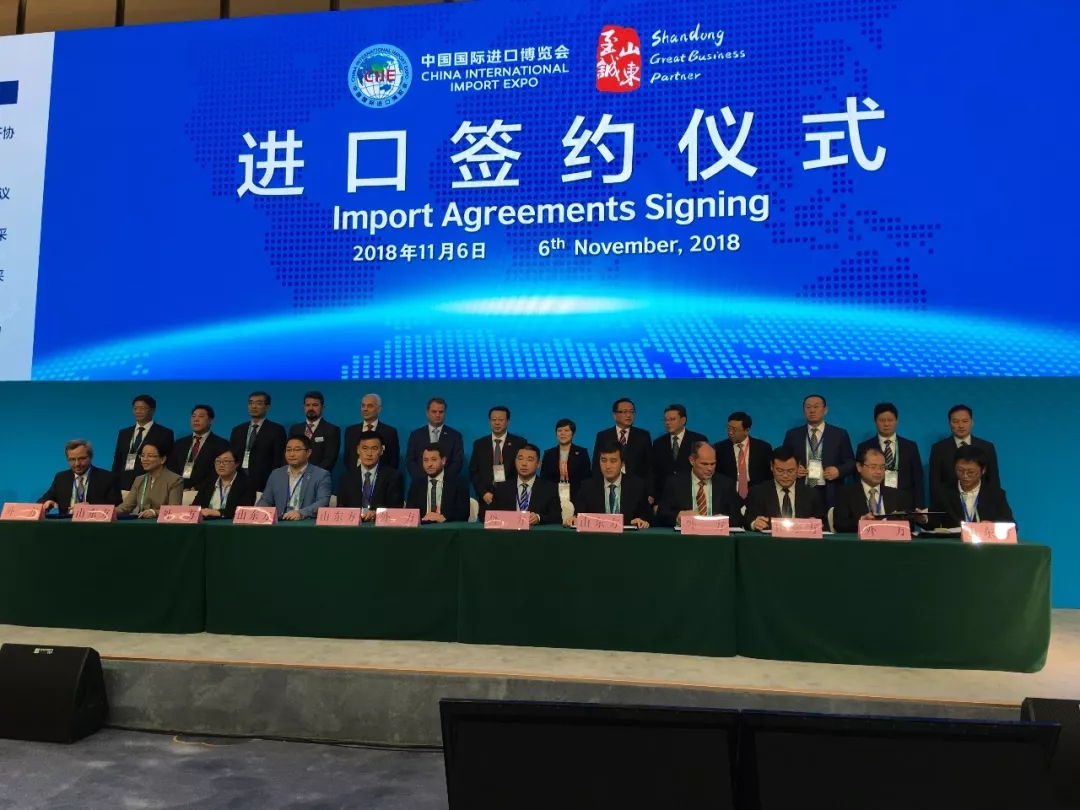 On November 5, 2018, the first China International Import Expo opened in Shanghai. On the morning of November 6, "Sincere Shandong, New Products, New Trade, New Vision --- Multinational Companies Choose Shandong New Product Launch Conference and Import Signing Ceremony" was grandly held. Gong Zheng, Governor of Shandong Province, delivered a keynote speech and business Assistant Minister Li Chenggang, President of the Korean Trade Association Jin Rongzhu, and heads of multinational enterprises delivered speeches successively. The meeting was chaired by Ren Airong, Vice Governor of Shandong Province, Song Lili, deputy general manager of Jinsheng Group, general manager of Shandong Jinsheng Cereals, Oils and Food Company, and General Manager of Jinsheng Import and Export Company. Manager Mu Fengxia attended the meeting on behalf of the group.
