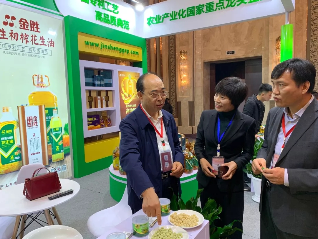During the leaders' visit to the exhibition, Zhang Guifeng, chairman of the China Cereals and Oils Society, Wang Ruiyuan, chief expert of the China Cereals and Oils Society and honorary president of the Peanut Food Branch of the China Cereals and Oils Society, Wang Qiang, president of the Peanut Food Branch of the China Cereals and Oils Society and deputy director of the Institute of Agricultural Products Processing of the Chinese Academy of Agricultural Sciences, Mu Yankui, President of Yihai Kerry Group, Xu Yongjun, Director of Peanut Business Department of Yihai Kerry Group, and other leading experts visited the Jinsheng Group booth to guide the work, and provided high-end products such as Jinsheng Original Virgin Peanut Oil and Jinsheng Original Virgin High Oleic Acid Peanut Oil. Peanut oil, bio-extracted health products and peanut leisure products are highly praised and fully affirmed.