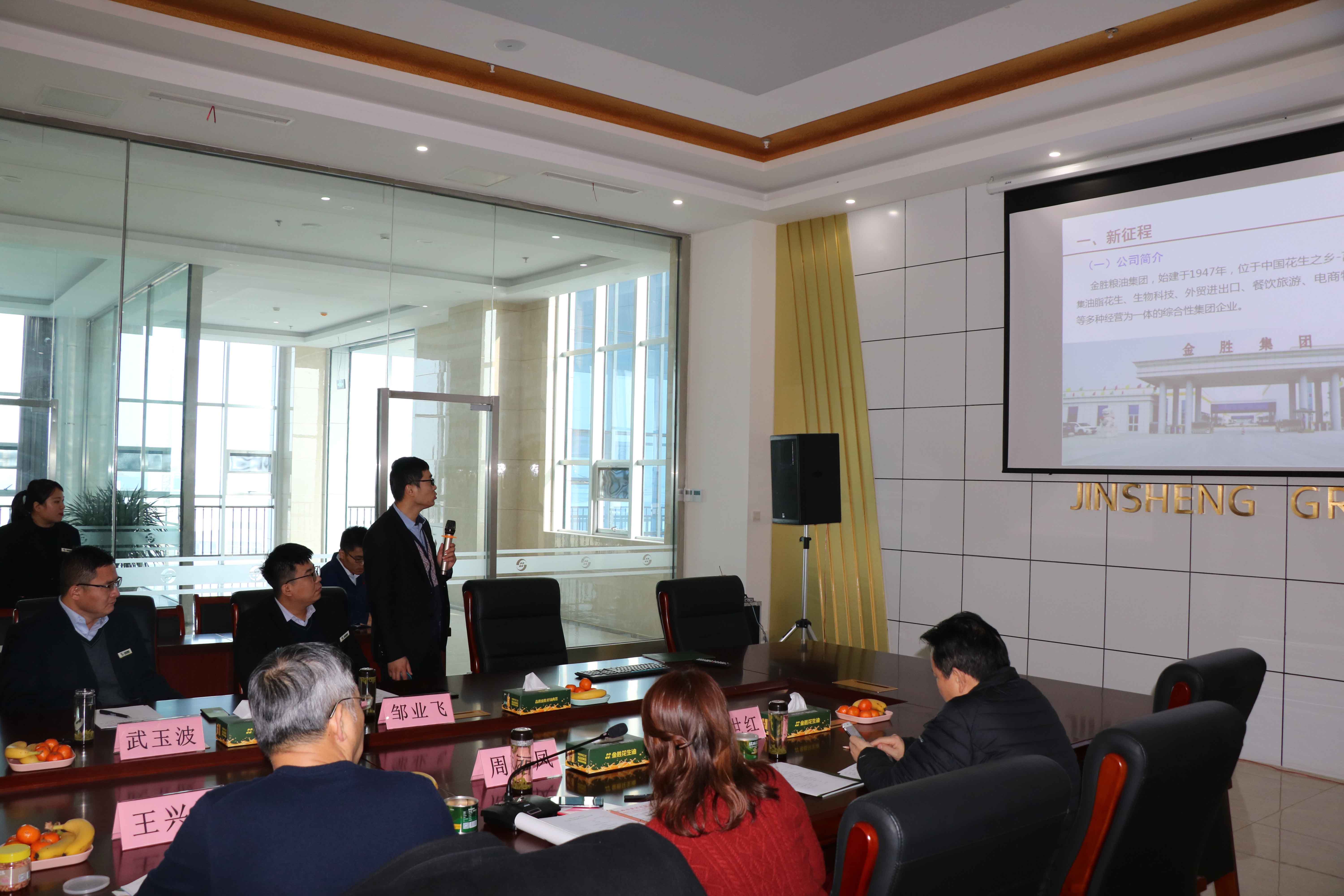 After the on-site observation, a symposium was held in the conference room on the third floor of Jinsheng Group. The meeting was chaired by Zhou Lifeng, secretary-general of the Oils and Fats Branch of the China Cereals and Oils Society. As the host, Mr. Song of Jinsheng Group welcomed the leading experts of the Oils and Fats Branch of the China Cereals and Oils Society to visit Jinsheng Group for inspection and guidance, and discussed the achievements made by Jinsheng Group in project construction and economic benefits. The results were reported in detail to the expert leaders participating in the meeting. Then Fei Xiaowei, the group's R&D center, introduced the company's achievements and existing technical problems in technological innovation and brand building. The experts spoke highly of Jinsheng's new look, analyzed the problems encountered by Jinsheng in its development, and put forward specific solutions, pointing out the direction for Jinsheng's future development.