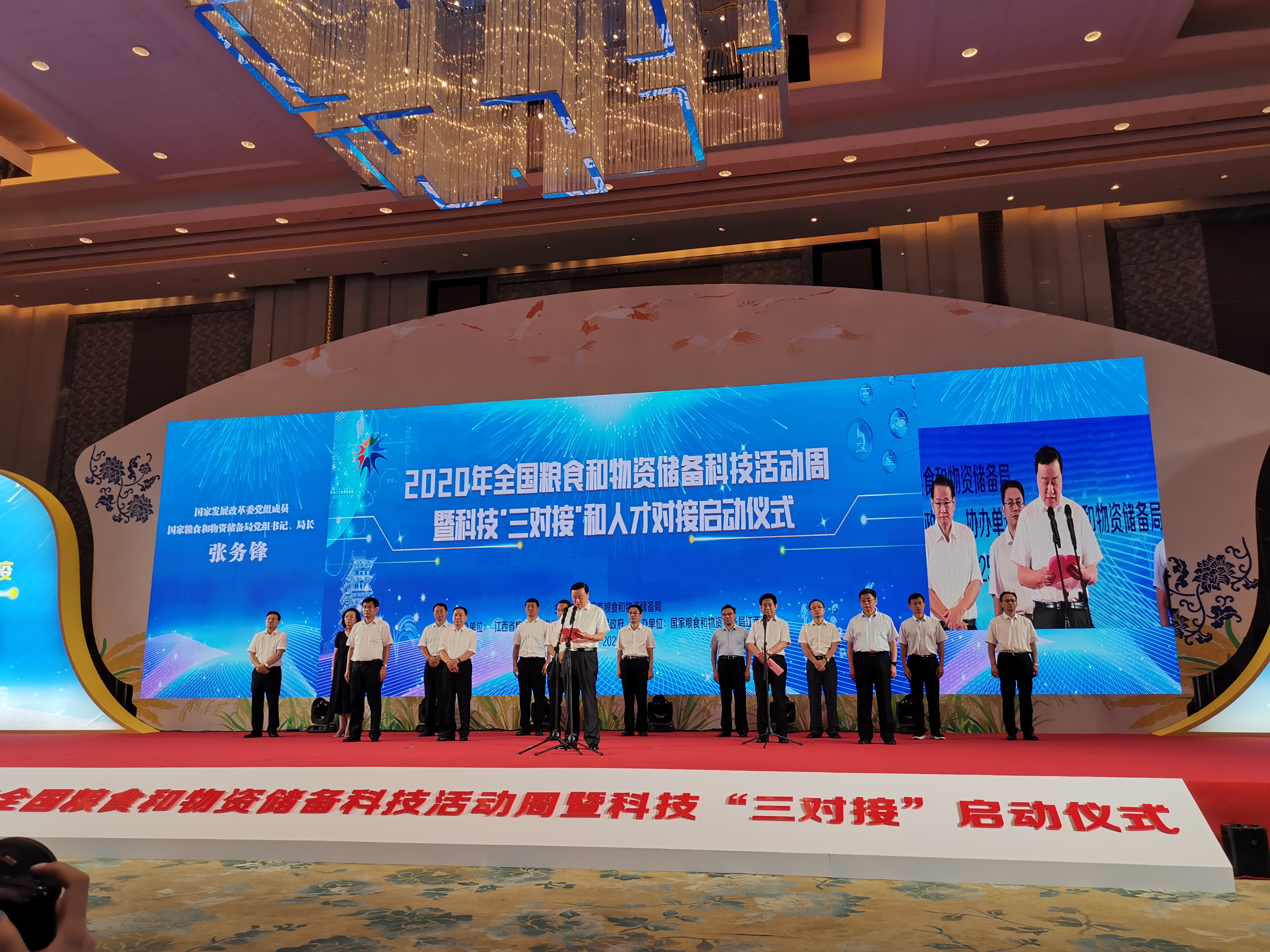 On August 25, the 2020 National Grain and Material Reserves Science and Technology Activity Week and the launching ceremony of the science and technology "three dockings" and talent docking hosted by the State Administration of Grain and Material Reserves were held in Nanchang City, Jiangxi Province. Zhang Wufeng, member of the Party Leadership Group of the National Development and Reform Commission, Secretary of the Party Leadership Group and Director of the National Grain and Material Reserves Administration, Yi Lianhong, Deputy Secretary of the Jiangxi Provincial Party Committee and Governor of Jiangxi Province, and other leaders attended the meeting and delivered speeches. Gao Guanyong, chairman and general manager of Jinsheng Group, attended the meeting on behalf of the group.